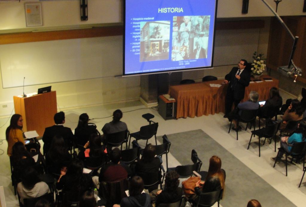 Inmediatamente después, comenzó la conferencia inaugural presidida por el Dr. Armando Maldonado de la Unidad de Cuidados Paliativos UC, quien expuso la “Importancia de los cuidados paliativos en el mundo de hoy”.